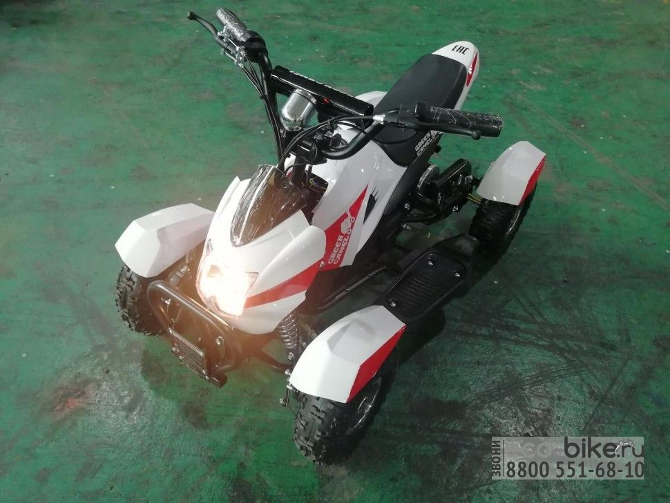 • оснащен 350 ваттным мотором, который разгоняет квадроцикл до 18 км/ч;