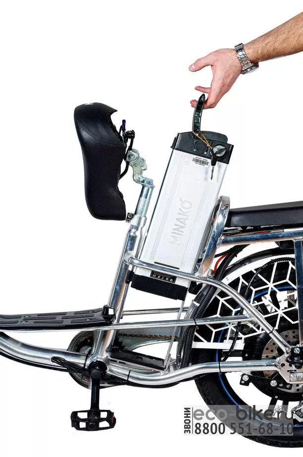 Minako V8 Pro New Гидравлика - грузовой электровелосипед с багажником объемом 120 л и грузоподъемностью до 150 кг. Мощная литий-ионная батарея емкостью 12Ah позволяет проехать до 45 км. Комфортные амортизаторы, регулируемая высота сиденья и удобные педали обеспечивают эргономичность и комфорт. Прочная и функциональная конструкция делает этот велосипед идеальным для курьерской доставки.