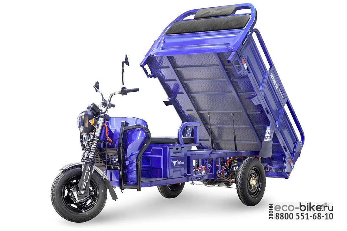 - электрический трицикл Rutrike D4 оснащён вместительным кузовом габаритами 1800 x 1200 x 450 мм (Д х Ш х В), в котором можно перевозить груз общим весом до 1 тонны;